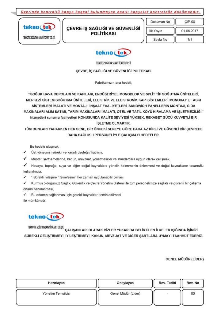 Our goal will be having refrigerators, unit coolers and cold storage panels for each size to be accepted by us first. We will try to become the first name that comes to mind about cold room. Our primary goal is to take pleasure from our costumers due to working with TEKNOTEK from the first contact to the delivery of the material or work.
